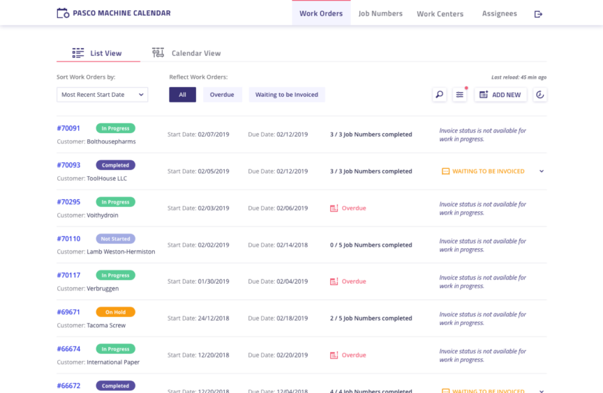 Pasco Machine Company is a family run machine shop that’s been in business since 1921. Pasco is well established. It’s successful. And, for the past 99 years, it’s been operating by pen and paper (then whiteboard and whiteboard markers). The machinists knew their old scheduling process — which involved a color-coded index card system, in-person status updates, and two full-time project managers manning the whiteboards — needed an update. They knew that digitizing could increase efficiency and save money. Beyond that, who knew?