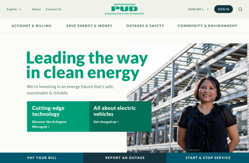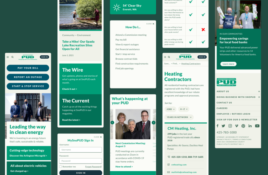 Snohomish County PUD is the second-largest publicly owned utility in Washington state, serving over 360,000 electric customers and 23,000 water customers. We spearheaded their first website redesign in over a decade, delivering a soup-to-nuts overhaul that put the customer first.