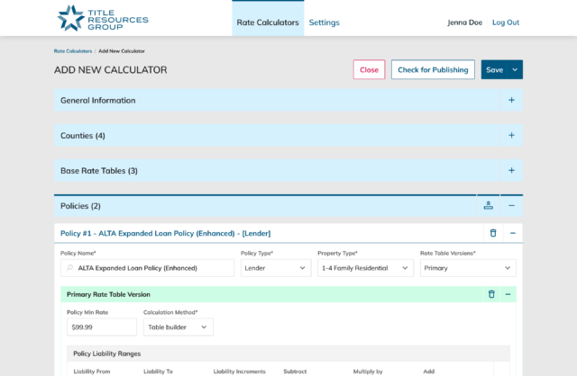 After an extensive deep dive into the nuances of title insurance calculation and the company’s operating goals, it became clear that we need to empower the policy experts with a rate calculator builder, like a CMS for title insurance calculators. For that, we needed to understand the full breadth of the different approaches, products, and rules across all of the jurisdictions. Lucky for us, TRG’s lead subject matter expert is not only brilliant, but also an excellent teacher and collaborator.